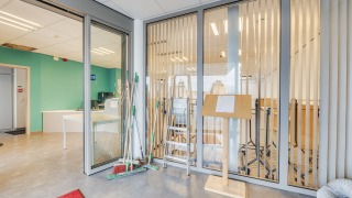 Une cellule commerciale ou bureaux de +/- 70 m², salle d'eau avec toilette, réserve et chaufferie (loué).
